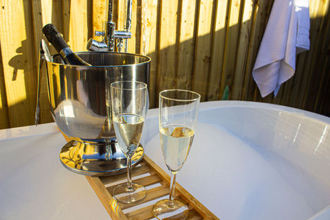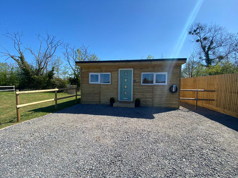 Our lovely self catering YewTree Lodge. Enjoy an equipped modern space, suitable for 2 adults. Including Kitchenette, bathroom and open plan bedroom and lounge. Fresh white bedding, towels and slippers included